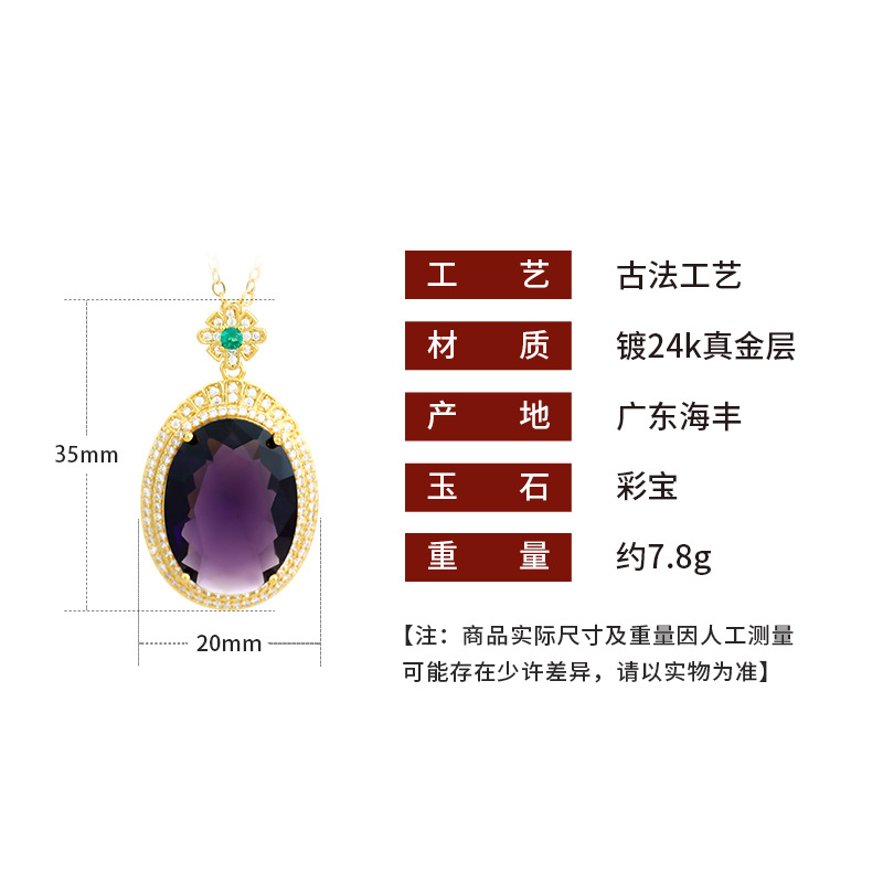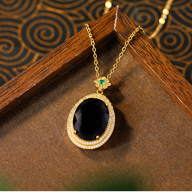 o1cn010bqk1i2nqp0aqoh9k 2200655039958 0 cibRetro full diamond light luxury high-grade violet gem pendant inlaid oval pendant color necklace live wholesale