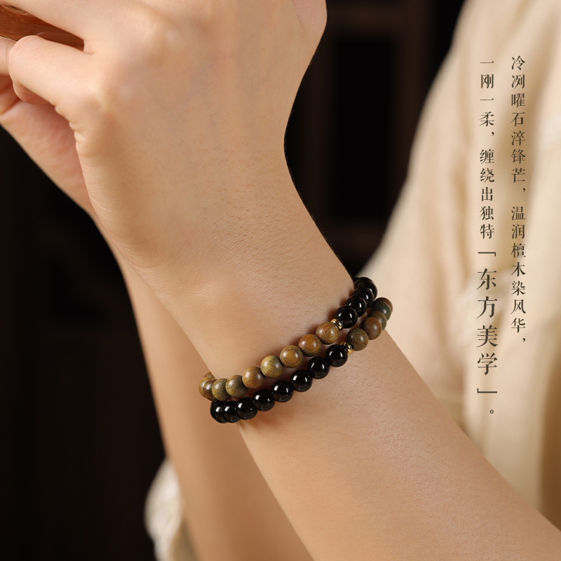Be the first to review “Retro Green Sandalwood Beaded Bracelet for Women, New Chinese Style Wooden Obsidian Rosary Beads, Double Circle Bracelet Wholesale”