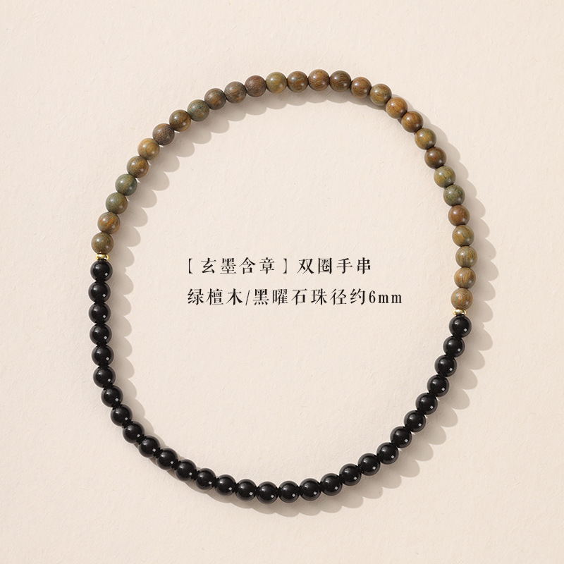 o1cn01uijjlj1xm1o1mpxmr 2207533192965 0 cibRetro Green Sandalwood Beaded Bracelet for Women, New Chinese Style Wooden Obsidian Rosary Beads, Double Circle Bracelet Wholesale