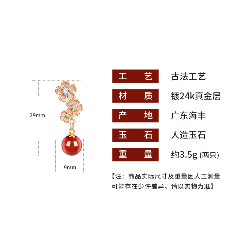 Be the first to review “S925银针珐琅桃花仿玉石耳坠女新中式轻奢高级感耳钉七夕节礼物”
