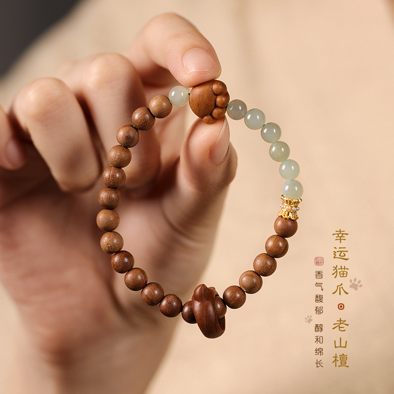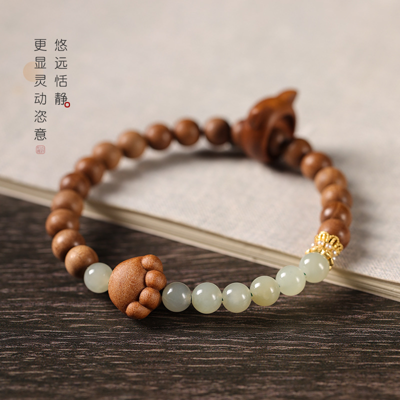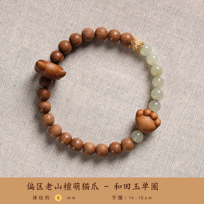 o1cn01xavqju1xm1ilvejyi 2207533192965 0 cibSoft Cute Cure Cute Sign to Cai Cat Claw Small Fresh Hetian Jade Spelling Old Mountain Sandalwood Single Circle Female Temperament Bracelet