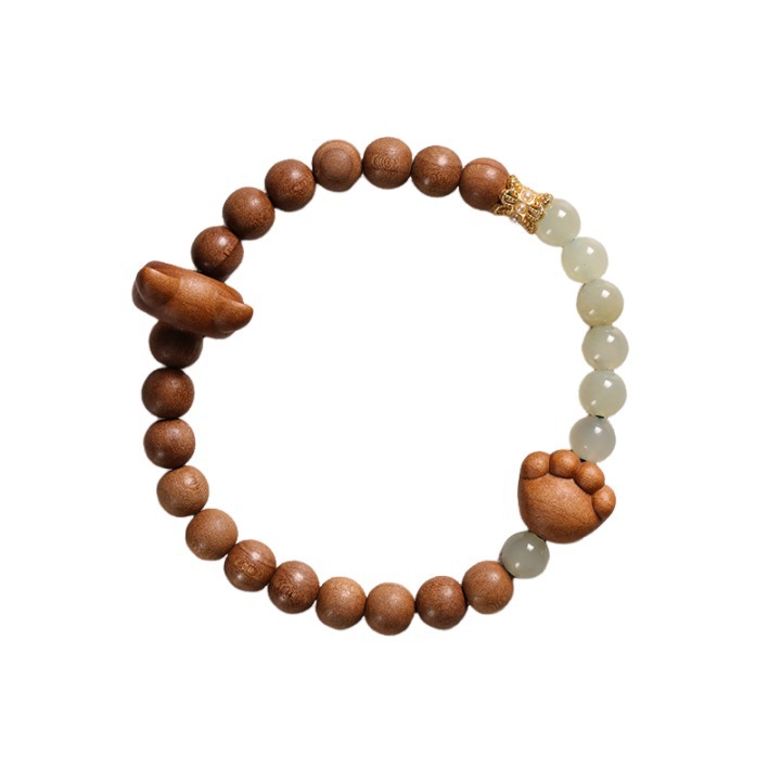 Soft Cute Cure Cute Sign to Cai Cat Claw Small Fresh Hetian Jade Spelling Old Mountain Sandalwood Single Circle Female Temperament Bracelet