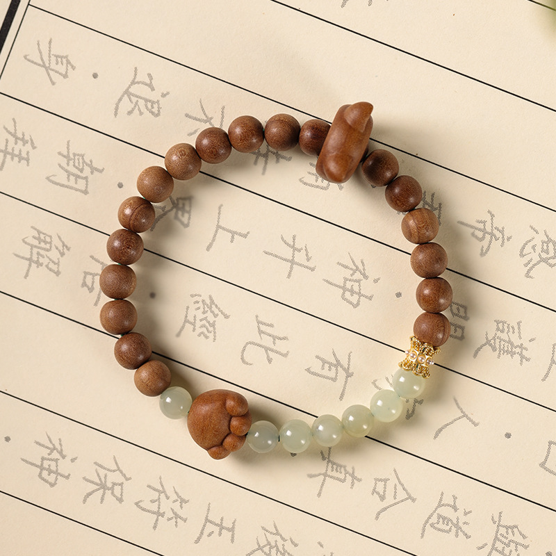 Laoshan Sandalwood and Hotan Jade in Partial Area-Lucky Cat's Claw [6mm]]