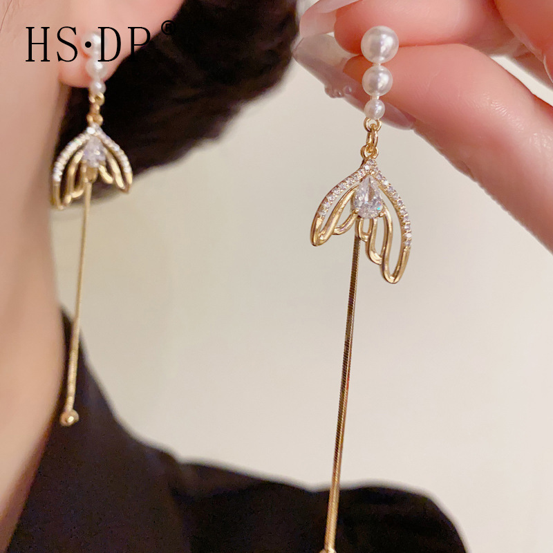 o1cn013femxv1s0wb3rzix2 2212028605705 0 cib 1Spring New Elegant Pearl Zircon Fishtail Long Tassel Earrings Women’s Fashion Sweet All-match Design Sense Earrings