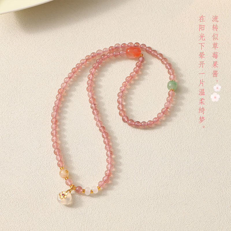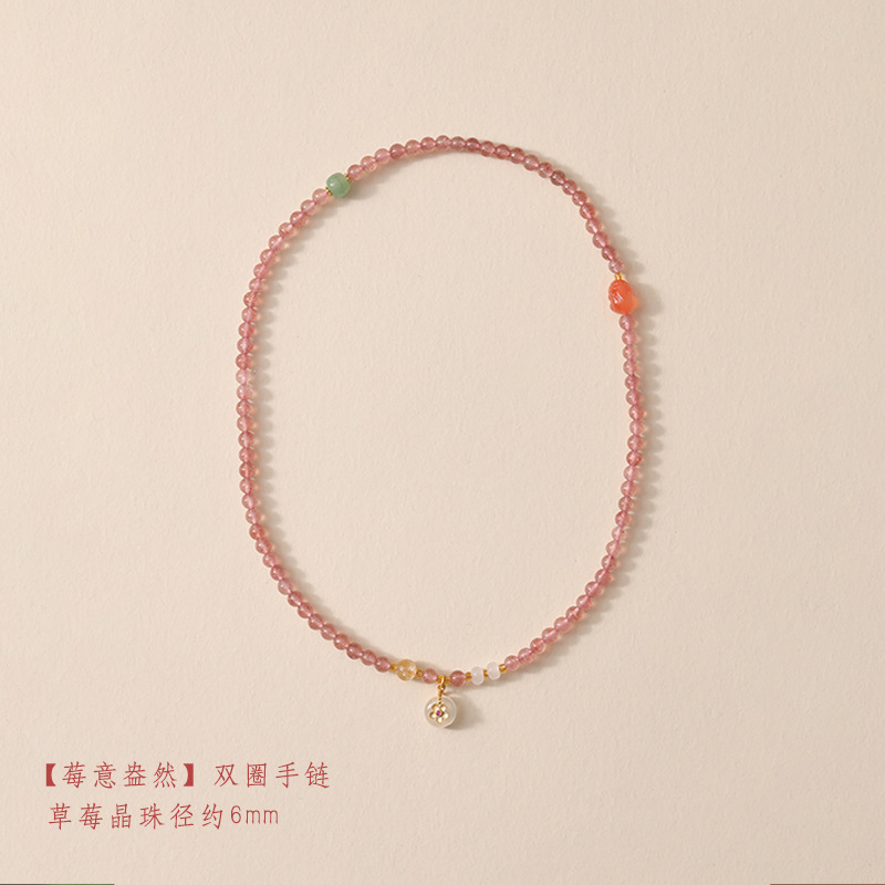o1cn012vkvcv1xm1o0stt0y 2207533192965 0 cibStrawberry Crystal Pixiu Multi-Circle Bracelet Attracts Rice Citrine Forest Style Female Sweet White Chalcedony Pendant Bracelet Manufacturer Wholesale