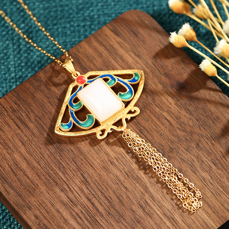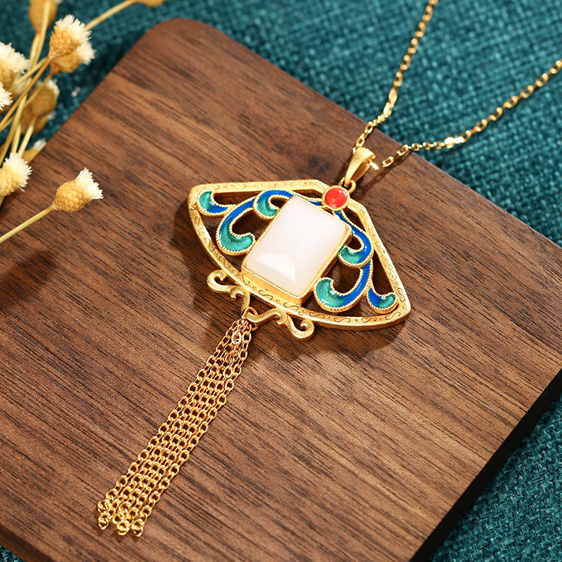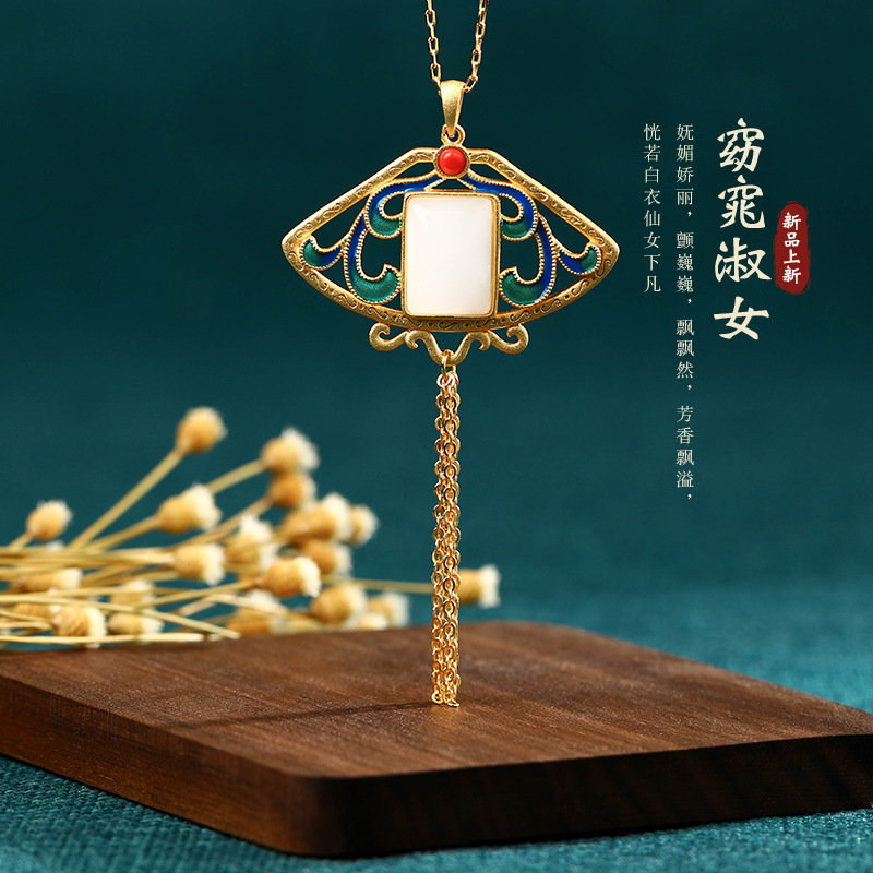 Be the first to review “Summer 2022 New National Fashion Chinese Cheongsam Ancient Costume Jewelry Neck Chain Imitation Hetian Jade Palace Round Fan Tassel Necklace Women”