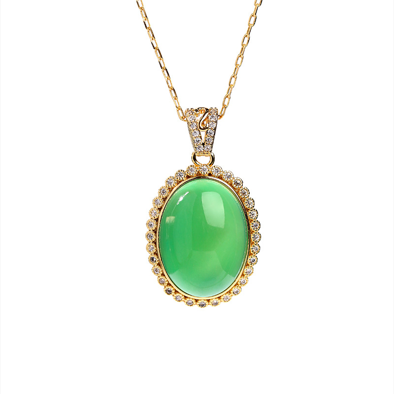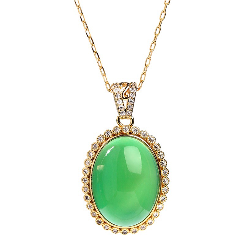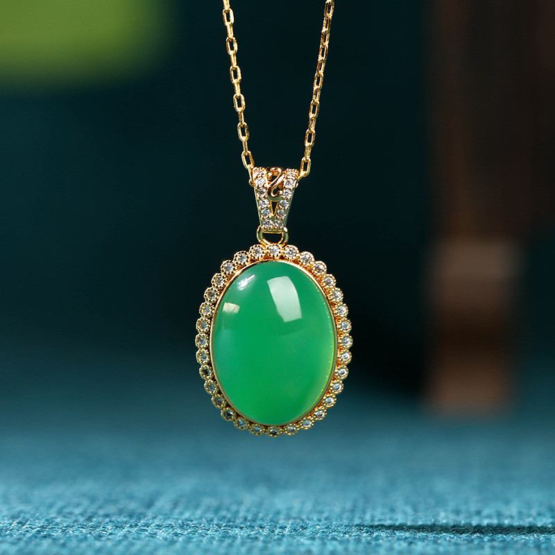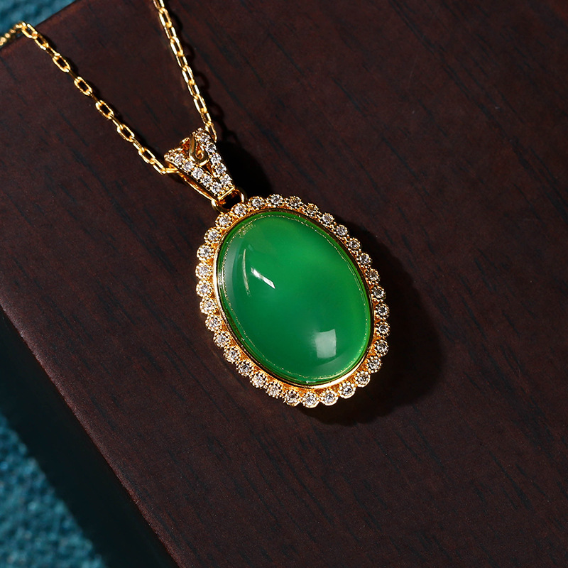 Taobao Tmall Hot Sale National Trendy Retro Palace Style Ancient Method Gold Plated Pendant Inlaid with Natural Chalcedony Emerald Necklace