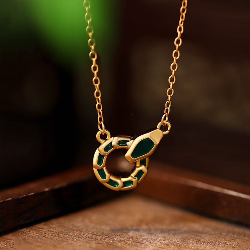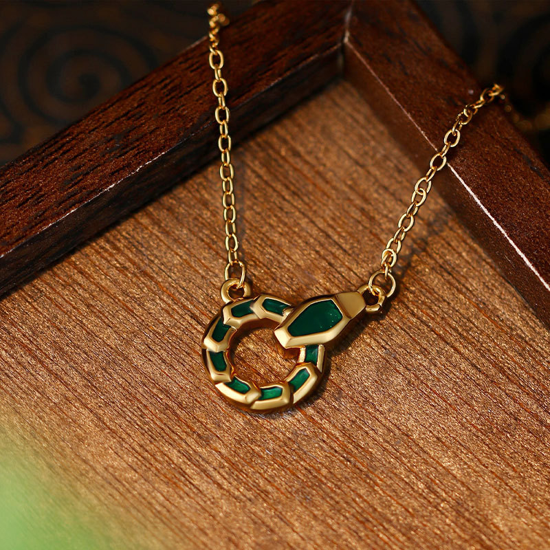 temu Explosive Year of the Snake Drops Dopamine Color-matching Necklace Women’s Retro Niche Elegant Light Luxury High-end Necklace