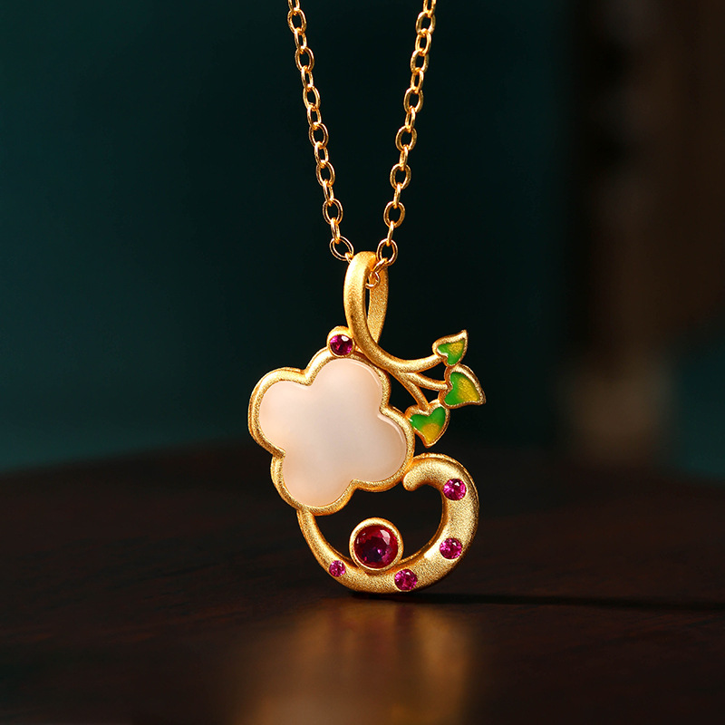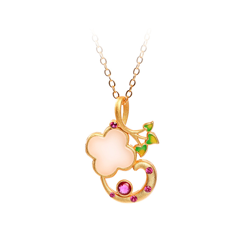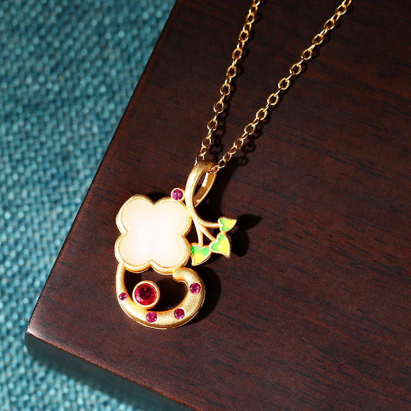Tiktok Kuaishou live hot sale New Chinese court retro style Clover imitation Jade enamel work painted necklace