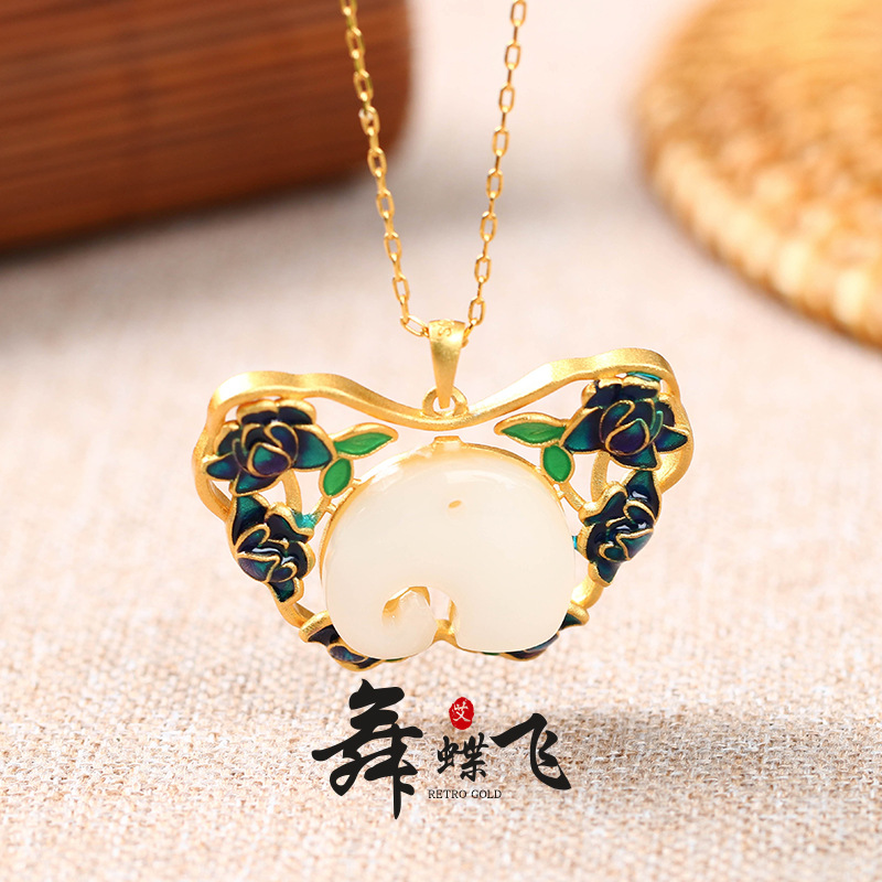 Be the first to review “Tourist Attractions Hot Sale Chinese Style Design Enamel Color Inlaid Blessing Elephant Imitation Hetian Jade Peace Lock Necklace”