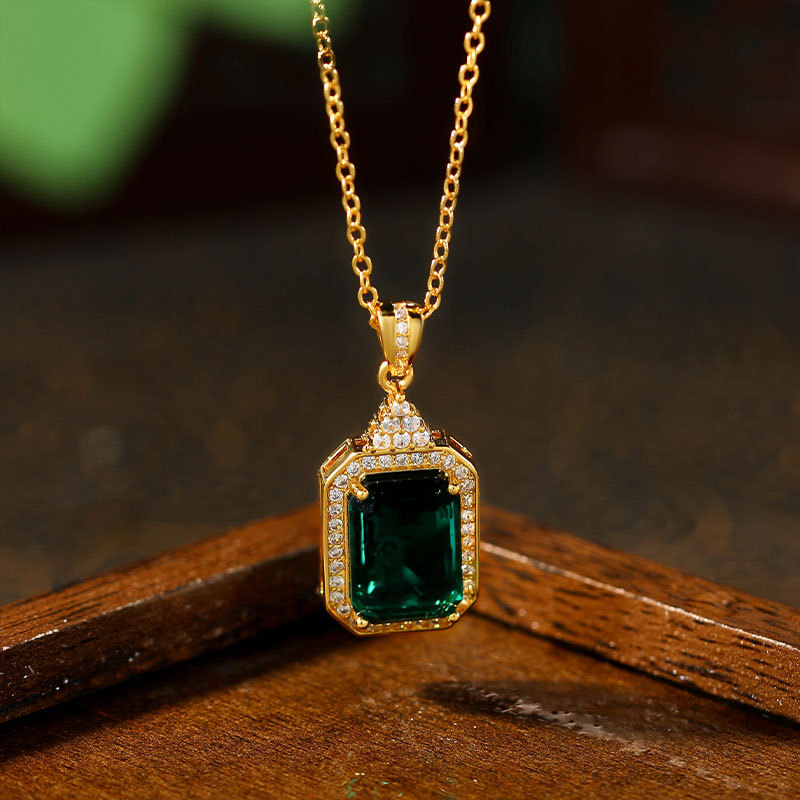 Versa Color Treasure Gold Plated Micro Brilliant Crystal Zircon Pendant for Men and Women Green Pointed Crystal Sugar Tide People Necklace for Men and Women
