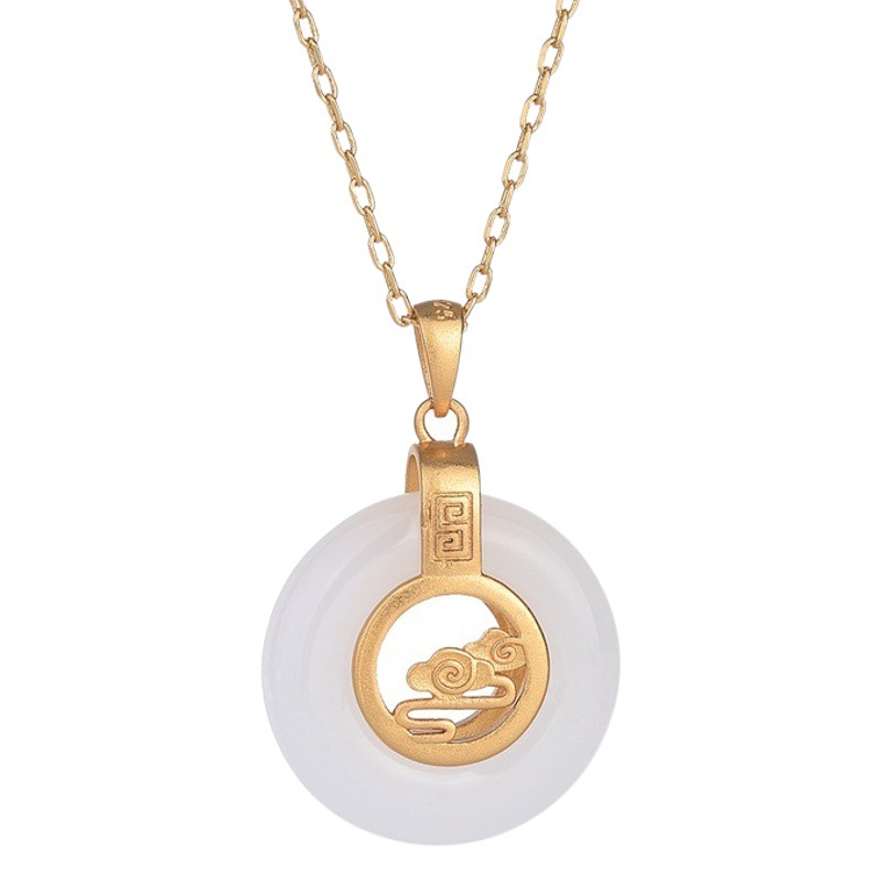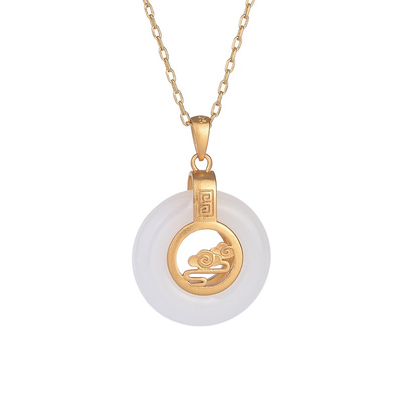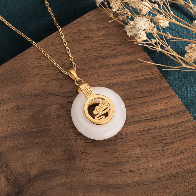 Vintage Gold fu character imitation Hetian white jade safety buckle pendant women’s jade pendant gift hand-made one-piece delivery