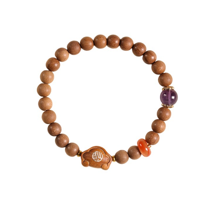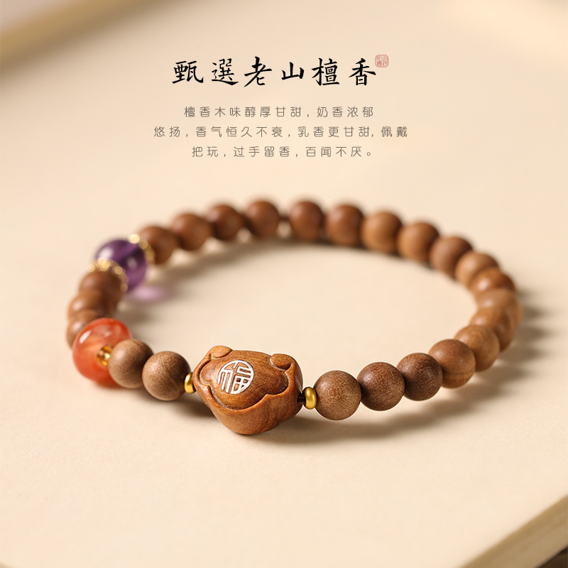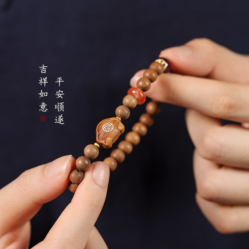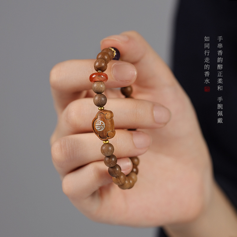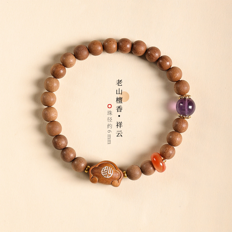 Walking Solid Perfume Old Mountain Sandalwood Rosary Ping An Xiangyun Lock Girl’s Temperament Light Luxury Single Circle Bracelet