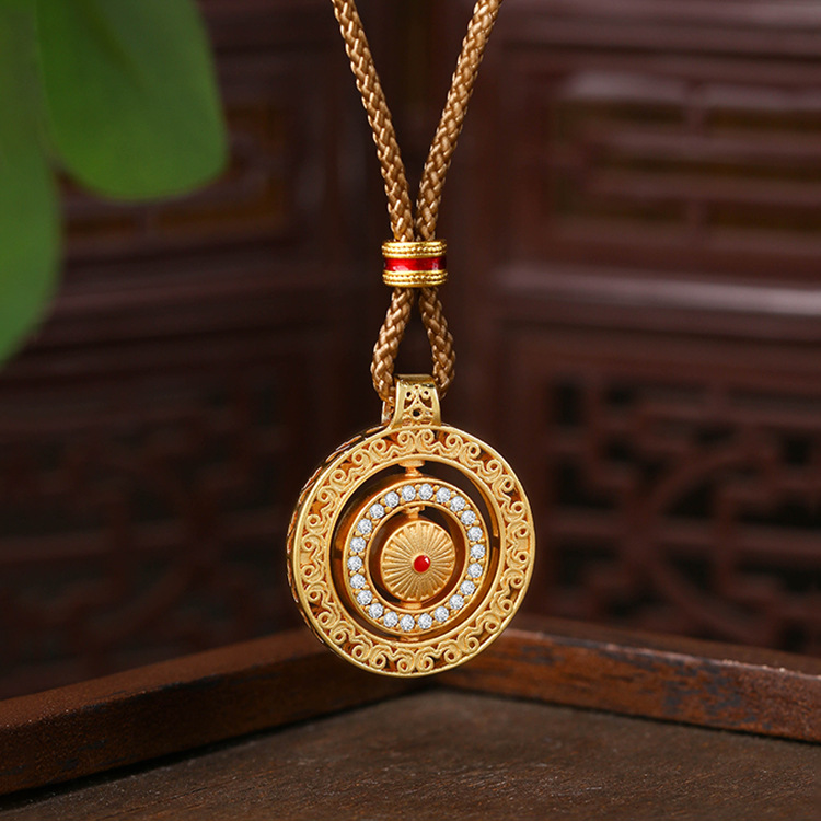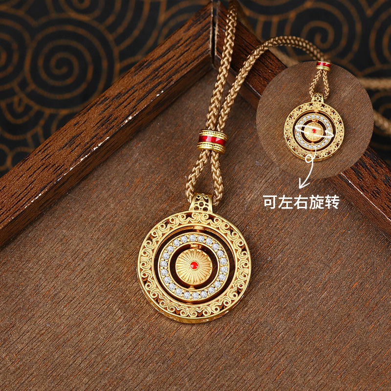 Weixue’s Same Style Ancient Gold-Plated Diamond-Encrusted Rotating Compass Pendant New Chinese Style National Style Fortune-Turning Light Luxury Necklace