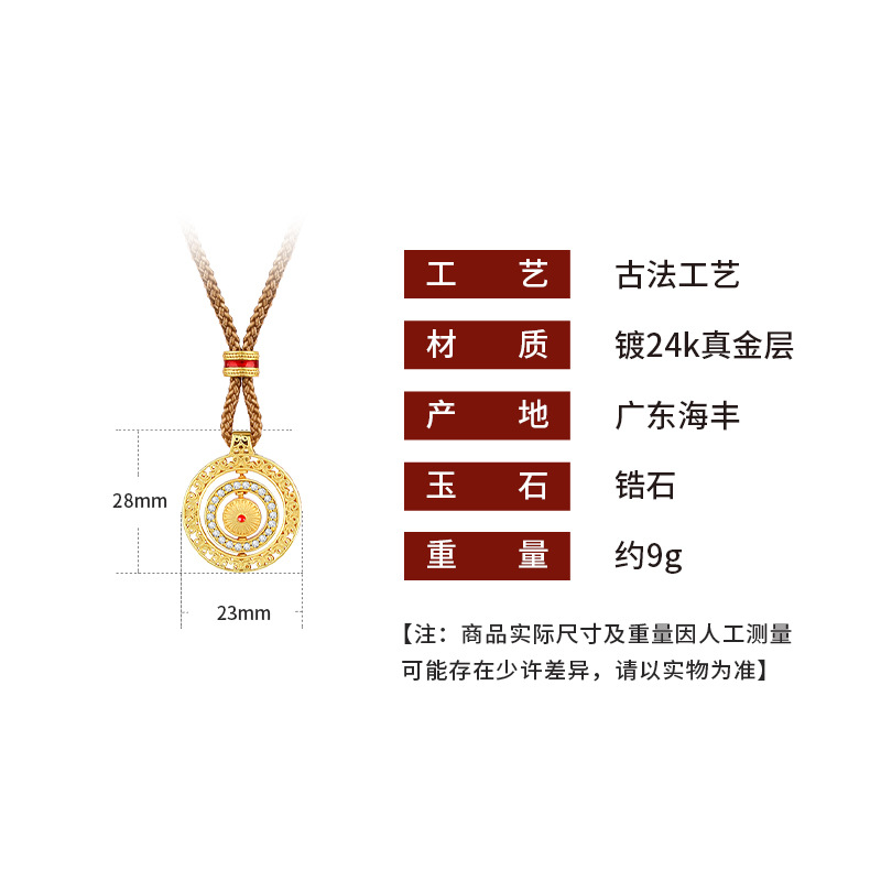 o1cn01nlzgtp2nqp5wdokvt 2200655039958 0 cibWeixue’s Same Style Ancient Gold-Plated Diamond-Encrusted Rotating Compass Pendant New Chinese Style National Style Fortune-Turning Light Luxury Necklace