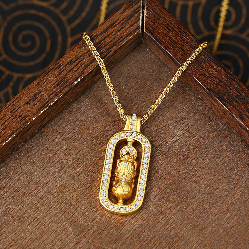 Weixue’s Same Style Sand Gold Bezel Diamond Gold-Swallowing Wealth Pixiu Gold Steel Pestle Pendant Necklace Light Luxury Live Broadcast Hot Item