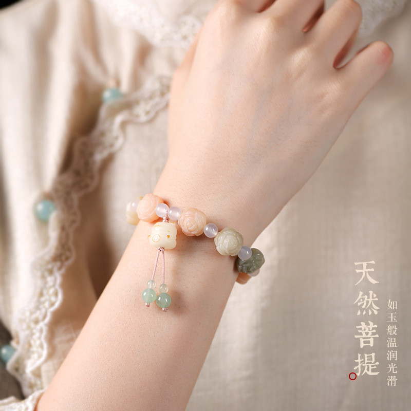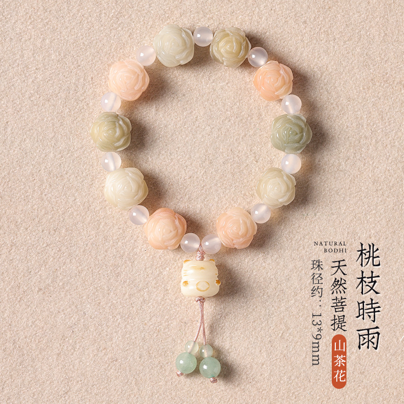 [peach branch rain] camellia bodhi bracelet, [fangfei ziwei] camellia bodhi bracelet, [white peach honey love] camellia bodhi bracelet