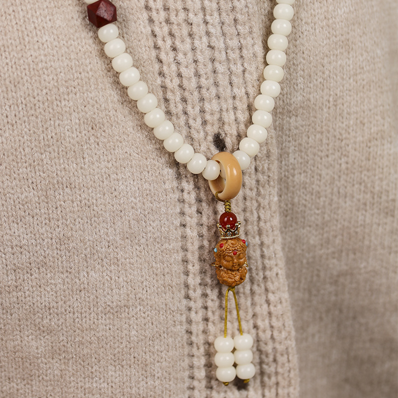White Jade Bodhi Old Beads DIY Sandalwood Cartoon Tzu 108 Beads Bead Plate for Men’s and Women’s Multi-Circle Handstrings