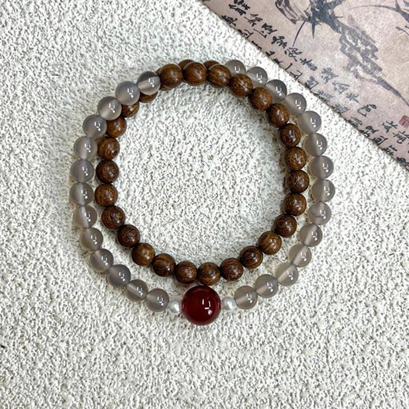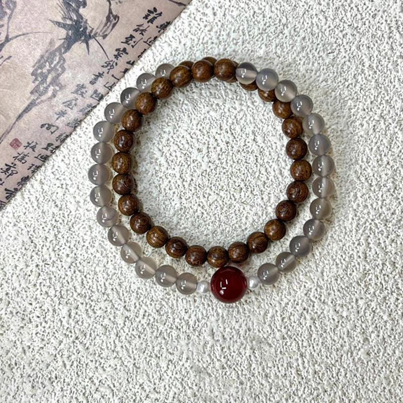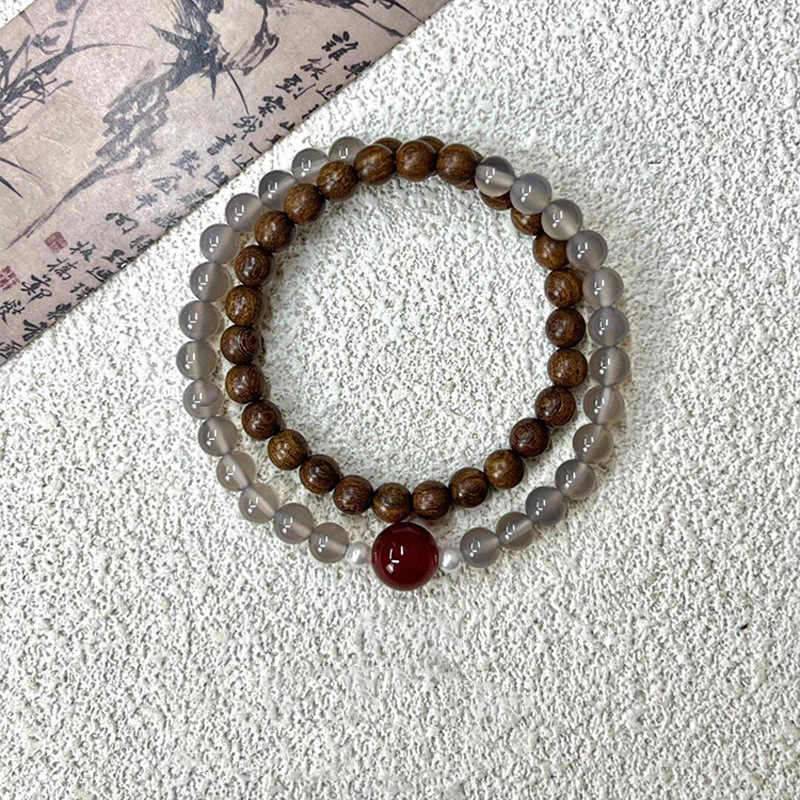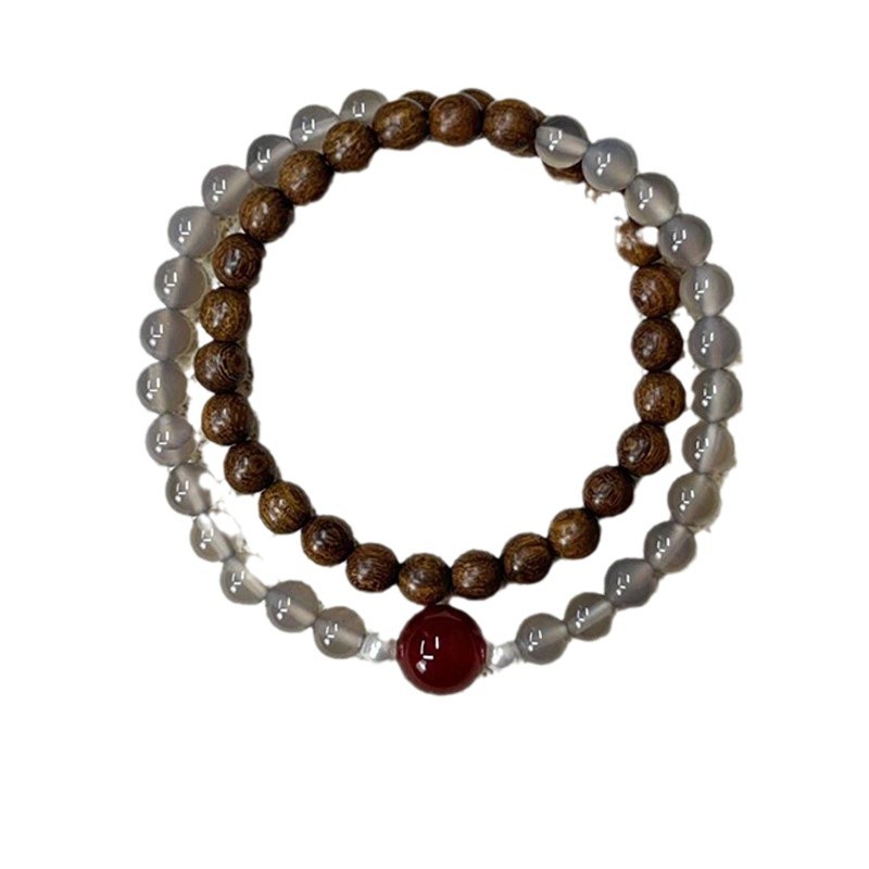 Be the first to review “Wholesale gold silk sandalwood with natural gray agate beaded bracelet new Chinese red agate temperament double ring bracelet for women”