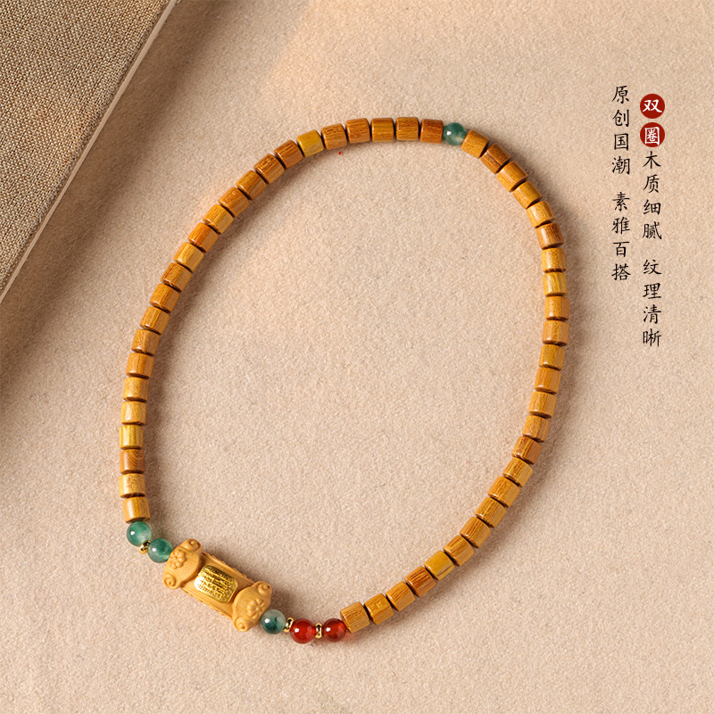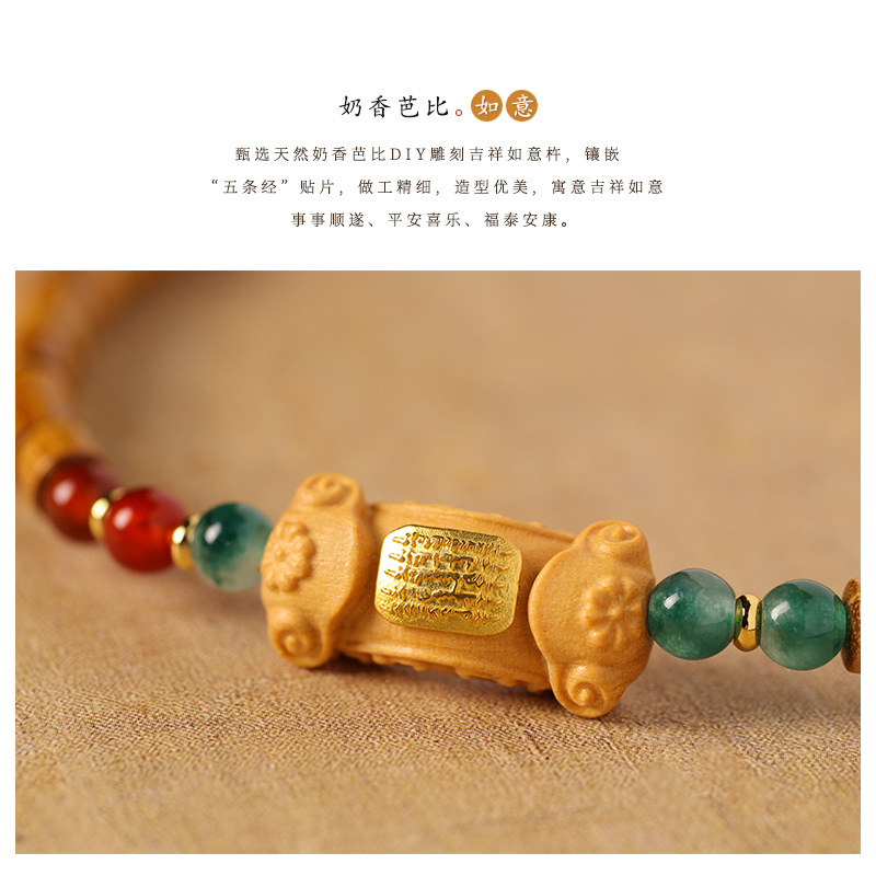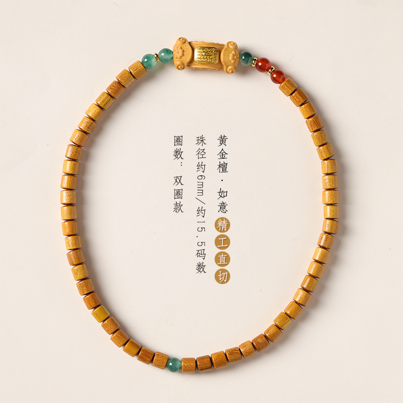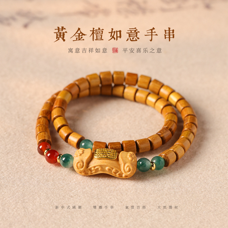 o1cn01ynnl5v1xm1ns1fhoq 2207533192965 0 cibWooden Oil-Rich and Delicate Golden Sandalwood Finely Cut Beads with Aquatic Grass Agate Milk Fragrance Barbie Ruyi Double Circle Women’s Bracelet