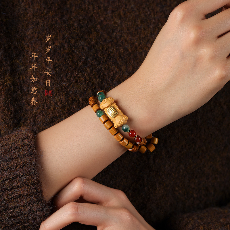 Be the first to review “Wooden Oil-Rich and Delicate Golden Sandalwood Finely Cut Beads with Aquatic Grass Agate Milk Fragrance Barbie Ruyi Double Circle Women’s Bracelet”