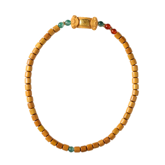 Wooden Oil-Rich and Delicate Golden Sandalwood Finely Cut Beads with Aquatic Grass Agate Milk Fragrance Barbie Ruyi Double Circle Women’s Bracelet