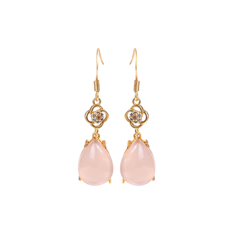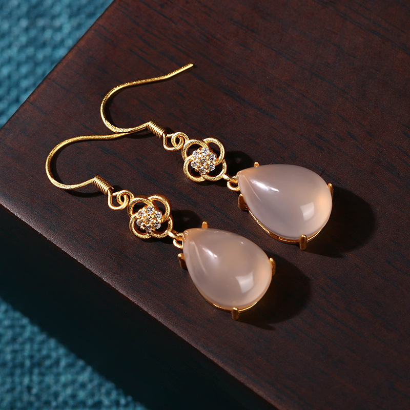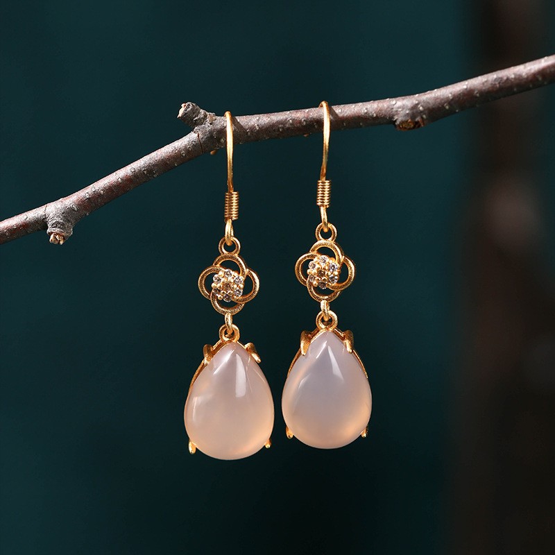 Xiaohong book blogger recommend vintage Palace style ancient gold-plated inlaid natural chalcedony water drop earrings earrings earrings