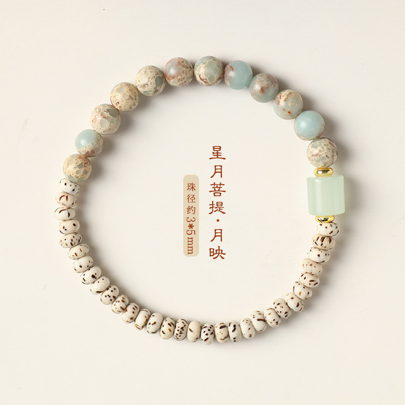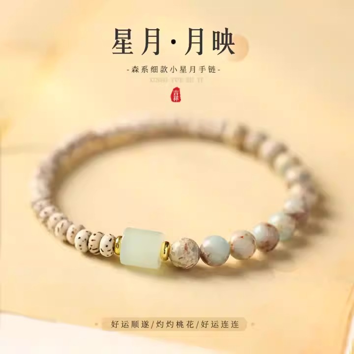 Star and moon bodhi-moon reflection, Yellow star moon bodhi, White star moon bodhi, Gold sandalwood bracelet, Star moon bodhi aventurine