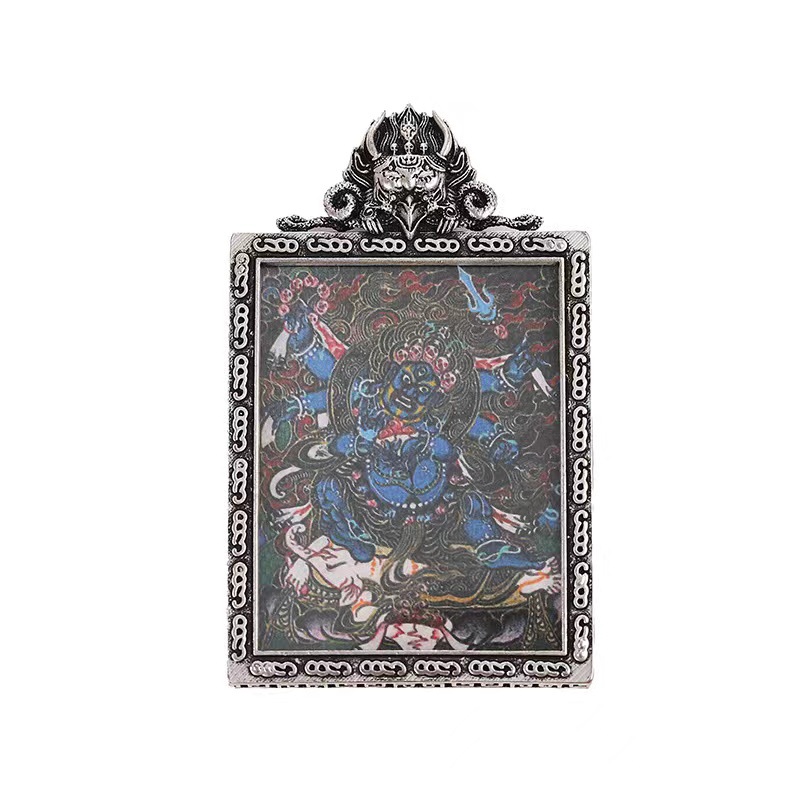 Xizang Thangka Big Black Day Six-Arm Maha Gala Dapeng Bird Button Head Retro Silver Thangka Special Box Pendant with Rope