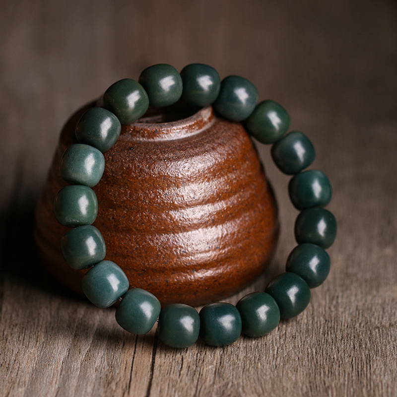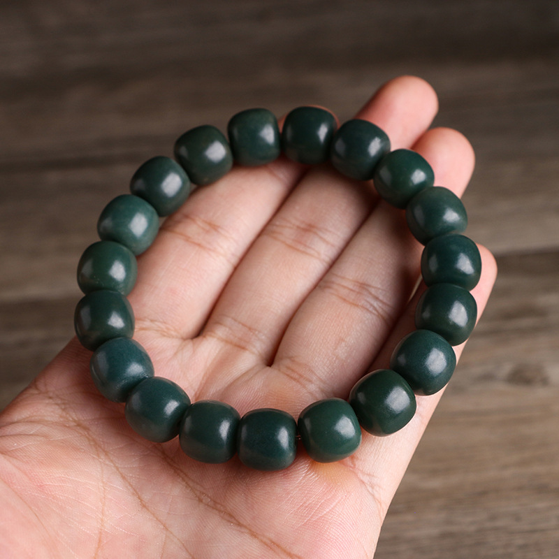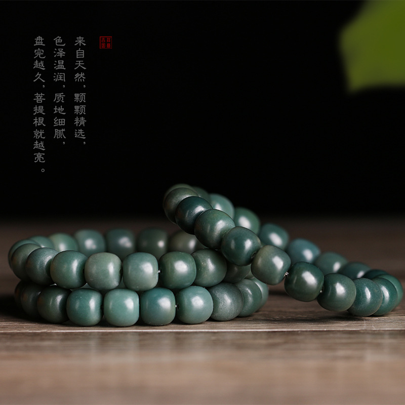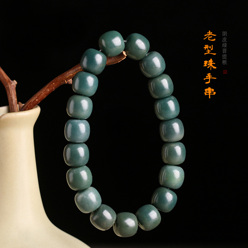 Yin leather Green Bodhi root Jade unisex old beads bracelet decorative bracelet rosary live streaming drainage Buddha beads