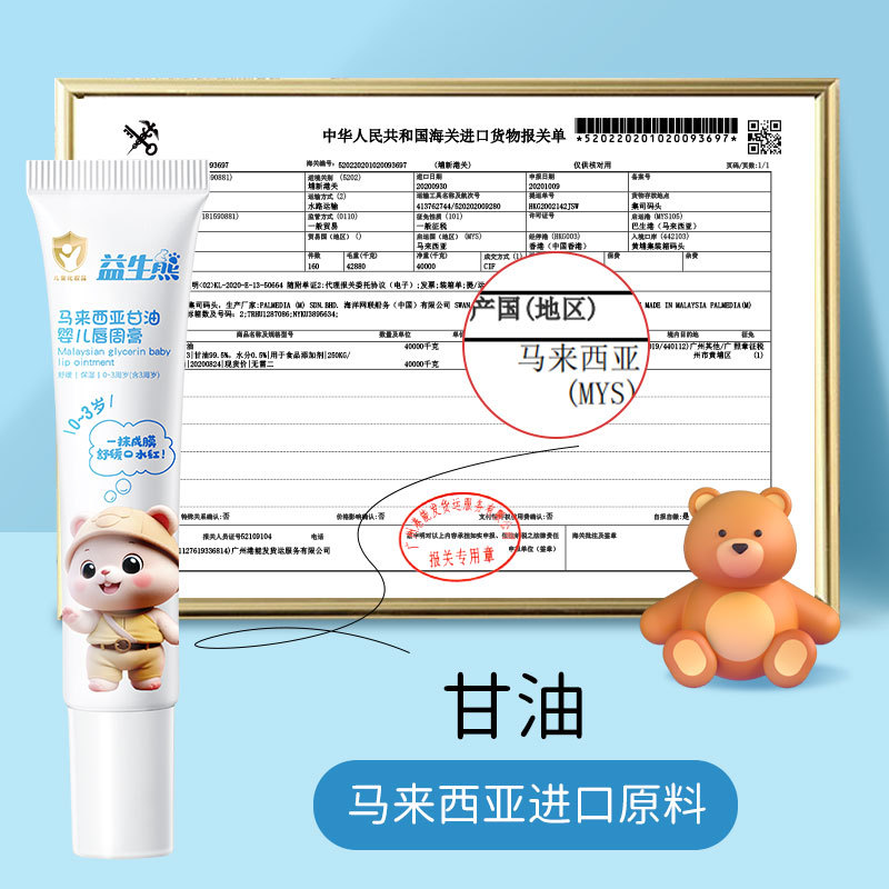 Yisheng Bear Malaysia Glycerin Baby Lip Week Cream Hydrating and Moisturizing Anti-Dry and Cracking Baby Lip Balm Slipstick Slipper Cream