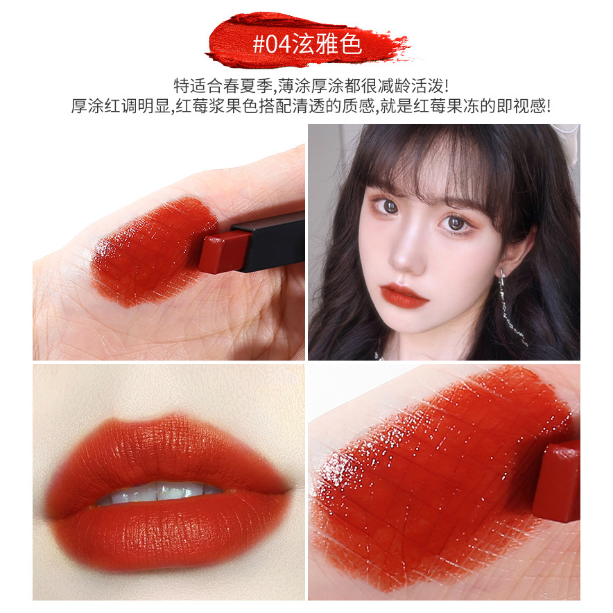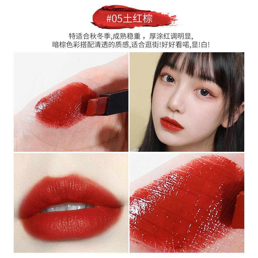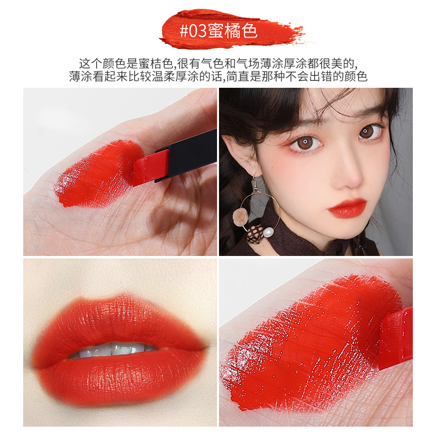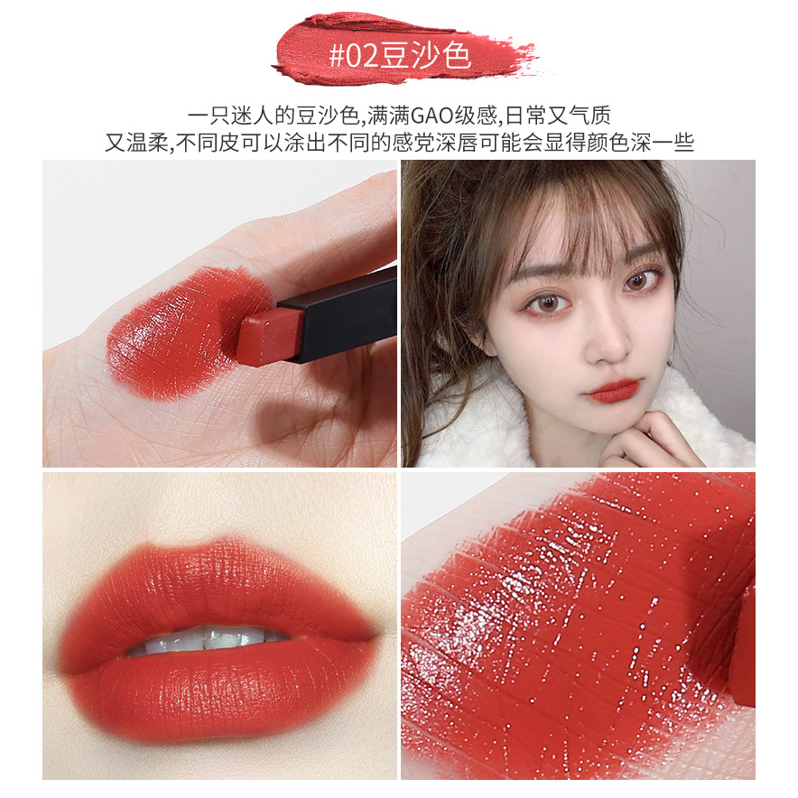 o1cn01vr87kb1bs2uk3ifeq 0 0 cibYsr Small Gold Bar Mouth Bean Paste Color Tangerine Red Brown Lipstick Cream Matte Matte Velvet Square Tube Lipstick
