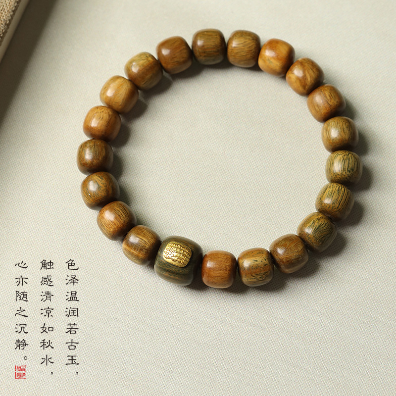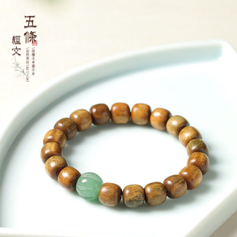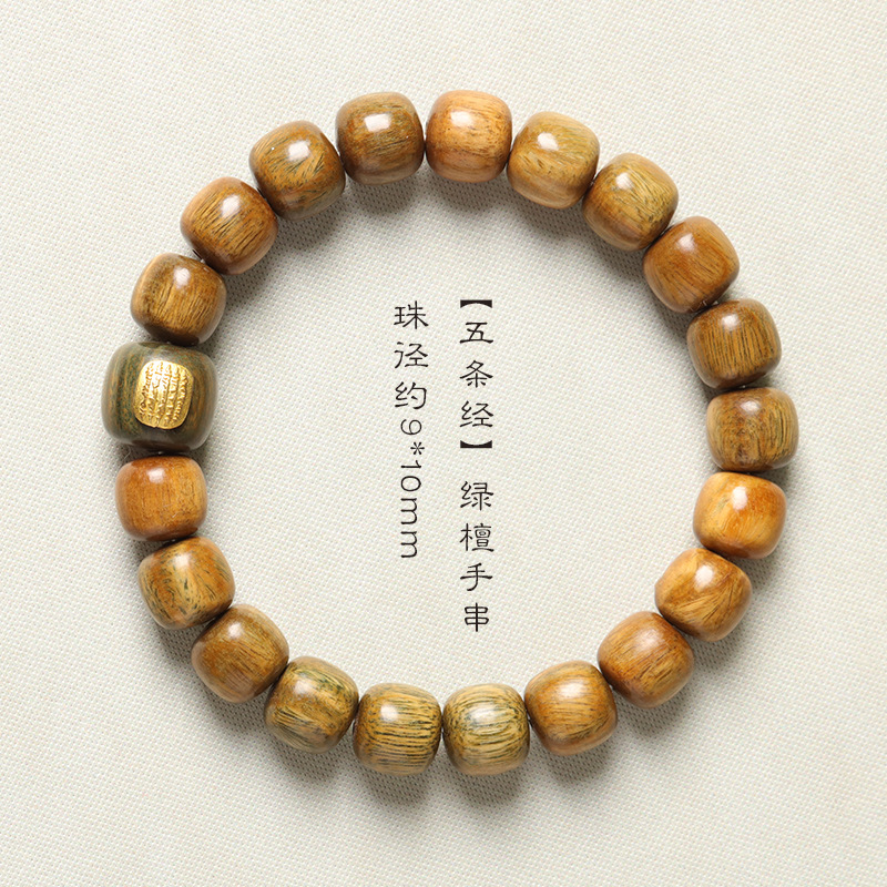 Zen Five Scriptures Green Sandalwood Bracelet Plate Play National Tide Around Fingers Soft Pumpkin Beads Bracelet Play Wholesale Supply