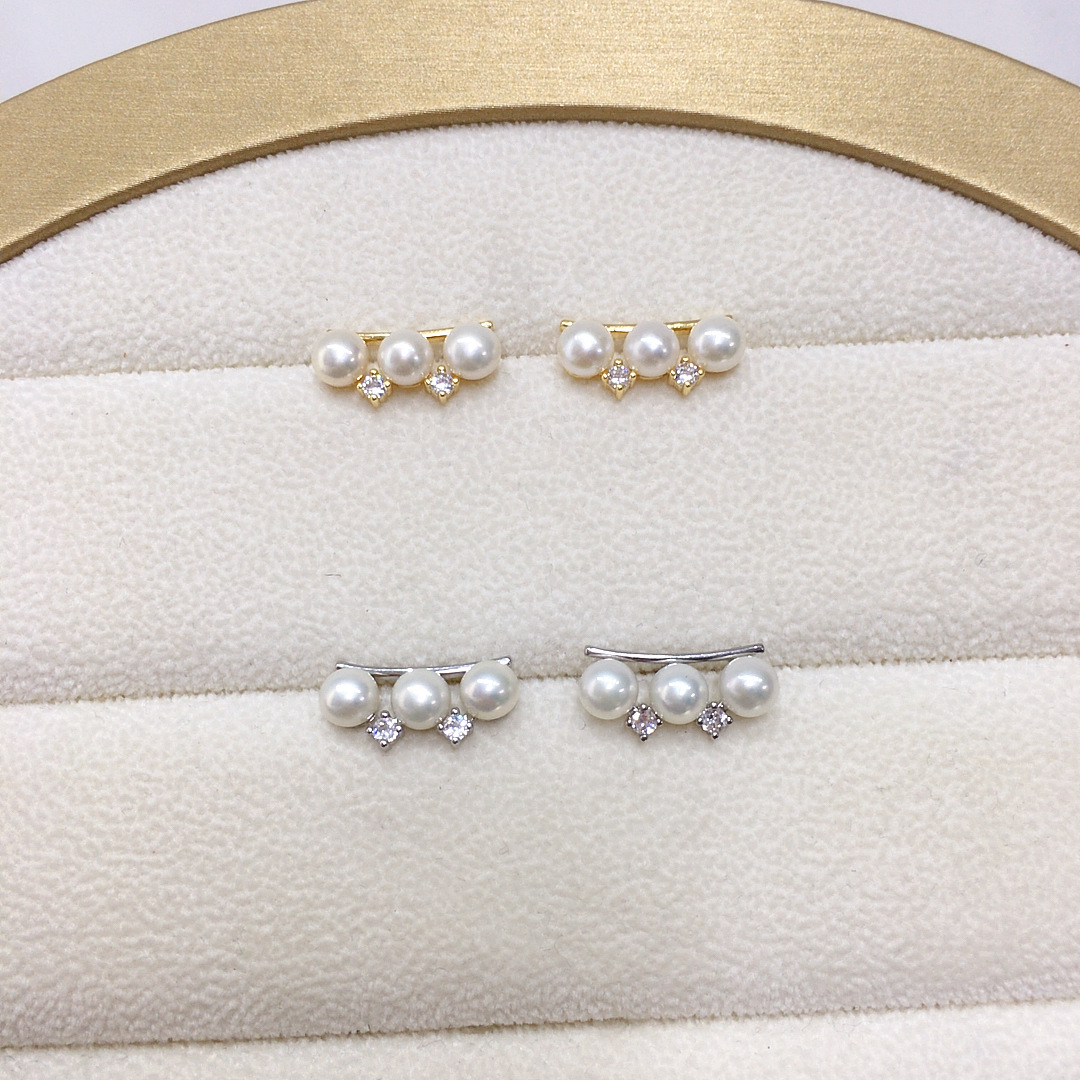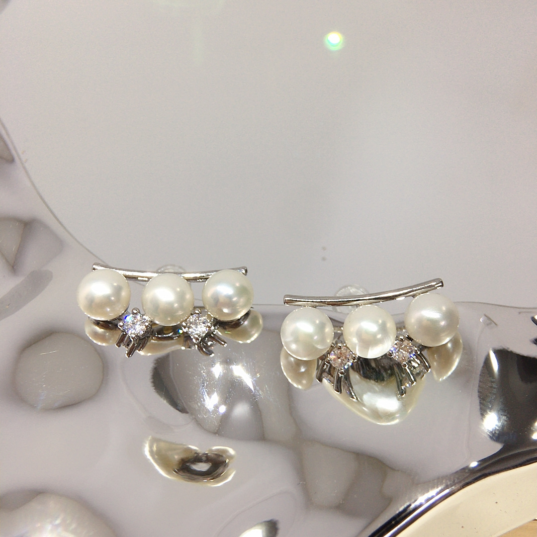 Zhuji Natural Freshwater Pearl Earrings Women’s Exquisite Multi-Bead Balance Zircon Fashion Pearl Earrings Source Wholesale