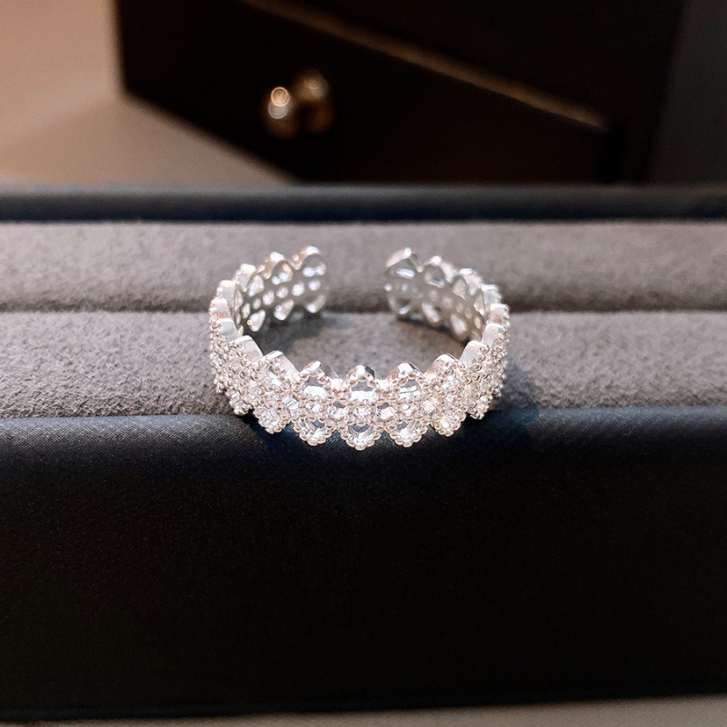Zircon Geometric Double-layer Open Ring South Korea Ins Style Niche Finger Ring Fashion Light Luxury High-end Jewelry for Women