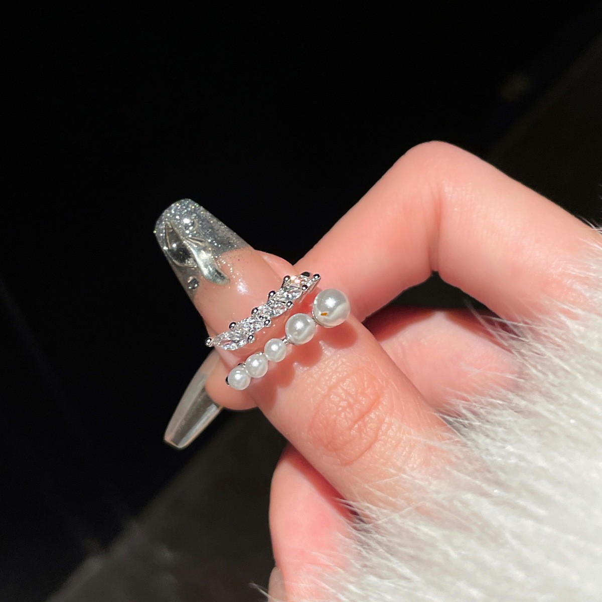 o1cn01fplghc1riscxh7ivb 3494832145 0 cibZircon Geometric Double-layer Open Ring South Korea Ins Style Niche Finger Ring Fashion Light Luxury High-end Jewelry for Women