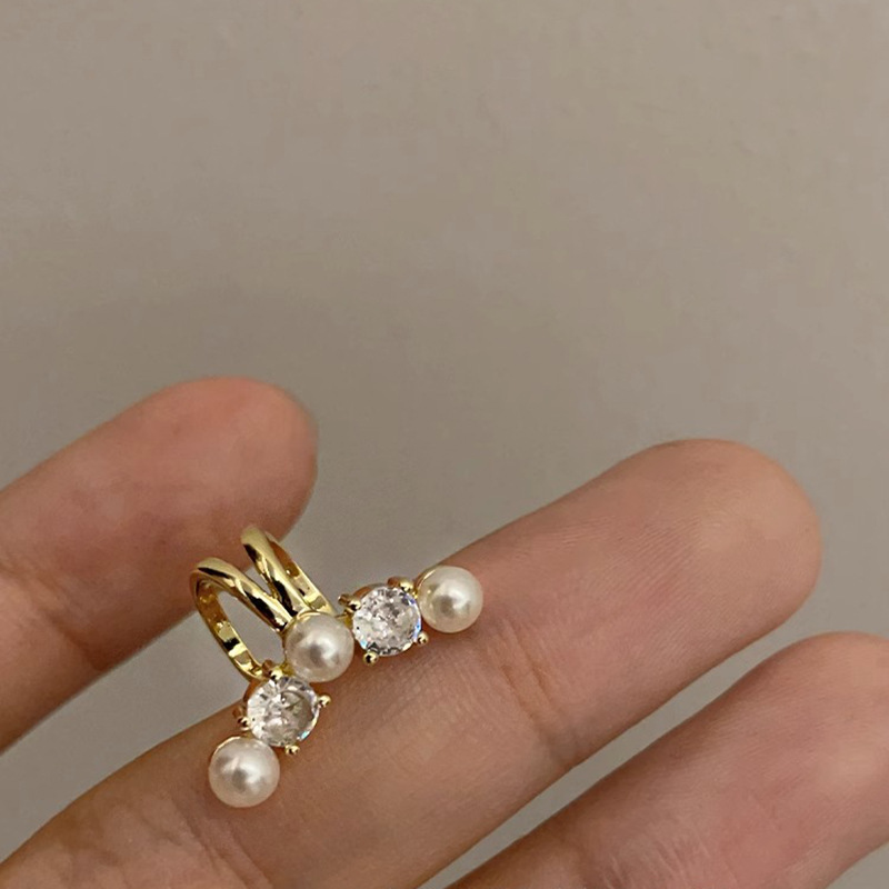 Zircon Pearl Small Ear Clip Earrings Earrings Bone Clip Women’s Earrings Niche Design Exquisite Simple Style New Product